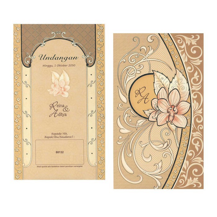 Undangan pernikahan motif batik gold emas simple elegant mewah cantik.